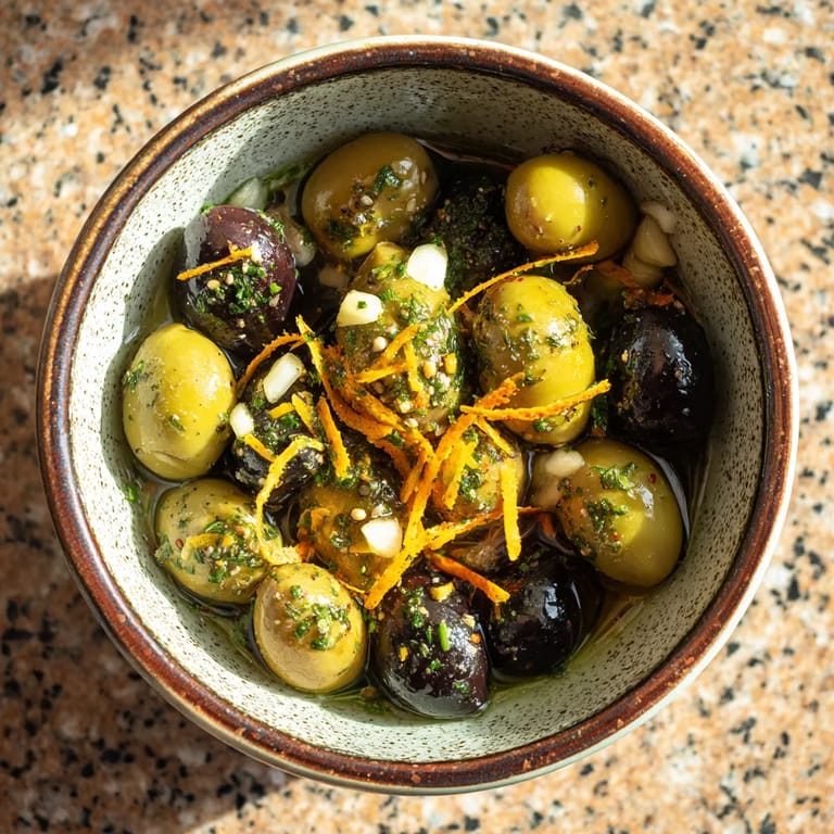 La primera vez que preparé estas aceitunas fue para una cena improvisada con amigos y desde entonces se han convertido en mi recurso infalible. El aroma que llenan la cocina mientras preparo la marinada siempre me transporta a mis vacaciones por el Mediterráneo.