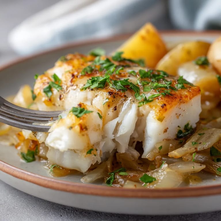 Descubrí esta receta durante mis vacaciones en la costa española y desde entonces se ha convertido en mi plato favorito para cenas familiares. La combinación de bacalao con cebollas caramelizadas evoca recuerdos de atardeceres mediterráneos.