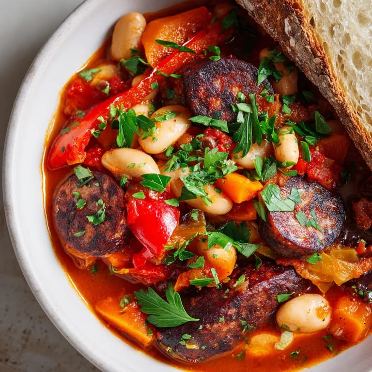 Guardar Este guiso reinterpreta los callos clásicos al estilo madrileño con el toque catalán de la butifarra negra y la suavidad de las alubias blancas. Perfume ahumado de pimentón y un sofrito jugoso lo convierten en una receta festiva, rica y reconfortante. Perfecta para días frescos, reuniones familiares o cuando buscas un plato de cuchara robusto y lleno de sabor, pero más ligero y gourmet que la versión tradicional.