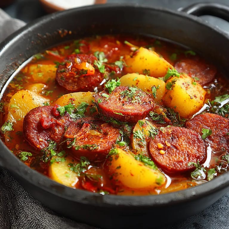 Descubrí esta receta durante un viaje a Madrid hace años. El aroma del chorizo y pimentón llenando las pequeñas tabernas me cautivó, y desde entonces, he perfeccionado mi versión casera hasta convertirla en una tradición familiar.