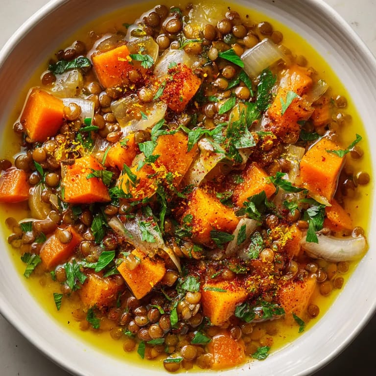 Guardar Este cocido madrileño ligero es mi homenaje a uno de los platos más reconfortantes de la cocina española, adaptado a una versión vegetariana y saludable. Con lentejas pardinas y calabaza asada, mantiene todo el sabor tradicional en un caldo suave y aromático, perfecto para entrar en calor y cuidarse durante el invierno. Es mi elección favorita cuando me apetece un guiso vegetal sustancioso sin sentirme pesada tras la comida.
