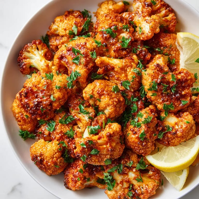 Guardar Las alitas de coliflor con salsa Romesco son una forma vibrante y sabrosa de disfrutar un aperitivo que todos adorarán sin importar si siguen una dieta basada en plantas. Hechas con una cobertura crujiente de harina de garbanzo y bañadas en una sedosa salsa española, estas alitas reinventan el clásico y lo llevan a otro nivel de color y sabor. Perfectas para compartir en una reunión o darse un gusto saludable entre semana.