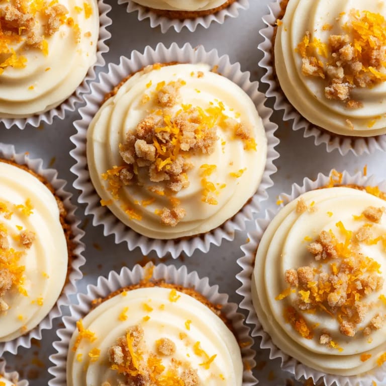 Guardar Estos cupcakes de turrón con crema de naranja son mi manera favorita de reinterpretar el postre de las navidades. Combinan la suavidad y dulzura del turrón de Jijona con la frescura cítrica de la naranja para lograr un bocado individual irresistible. Aportan tradición y creatividad a partes iguales y sorprenden incluso a quienes creen haberlo probado todo en la repostería española.