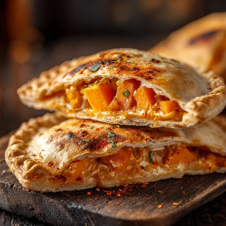 Guardar La mezcla de calabaza asada y queso de cabra fundido en estas empanadas es una auténtica oda al otoño La dulzura natural de la calabaza se transforma con el calor del horno y el contraste cremoso del queso de cabra El pimentón ahumado no solo acentúa el color sino que aporta un sabor muy especial Son perfectas como tapa en reuniones o para llevar en una merienda otoñal