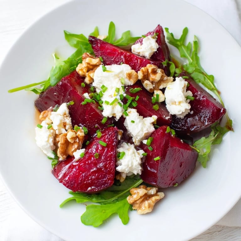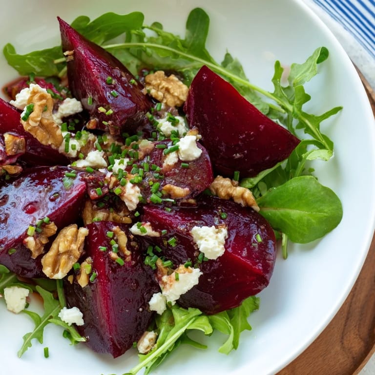 Guardar Hace algunos años, una amiga me sorprendió con esta ensalada en una cena de verano, y recuerdo perfectamente el momento en que probé la combinación de remolacha dulce con queso de cabra cremoso: fue un punto de inflexión en mi forma de pensar sobre las ensaladas. Desde entonces, cada vez que tengo remolacha en la cocina, pienso en aquella noche y en lo fácil que es crear algo verdaderamente especial con ingredientes simples.