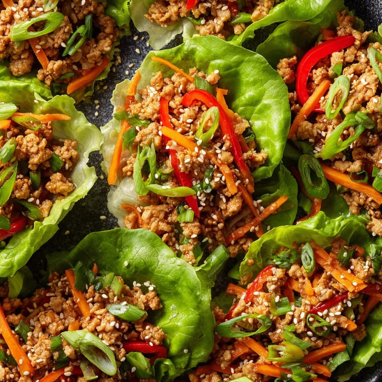 Guardar Estos wraps de lechuga con pollo y vegetales salteados han conquistado mi mesa cuando quiero algo fresco, rápido y con mucho sabor. La mezcla jugosa del pollo con una salsa hoisin-soya y un toque de jengibre transforma ingredientes sencillos y económicos en una comida que encanta a grandes y chicos. Perfecto para días ocupados pero también digno de compartir cuando tengo invitados.