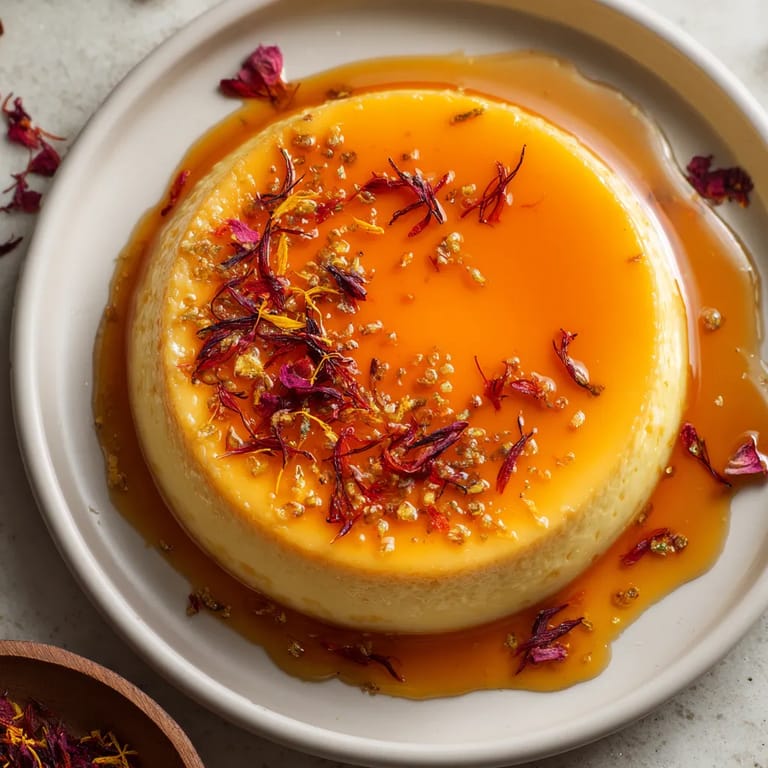 El flan es uno de los postres más queridos en la cocina española y mediterránea, siempre presente en comidas familiares y celebraciones; la versión con azafrán toma inspiración árabe fruto de la rica historia culinaria de la península, y el caramelo de naranja añade frescura sureña muy apreciada en Andalucía.