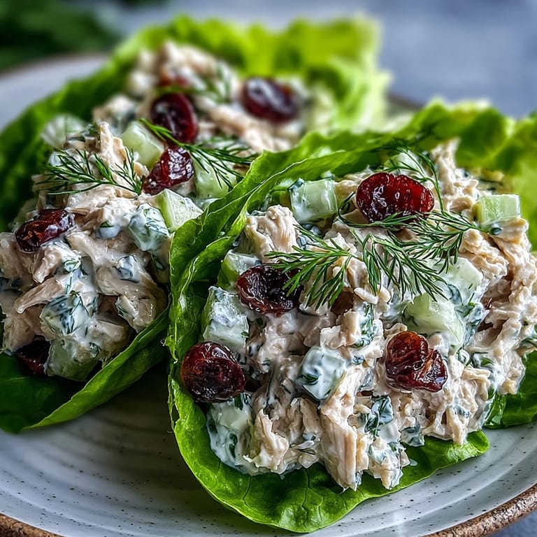 Guardar Una tarde de primavera, mientras buscaba algo ligero para el almuerzo, descubrí que podía transformar el pollo cocido aburrido en algo realmente emocionante simplemente usando yogur griego en lugar de mayonesa. El aroma de limón fresco y eneldo que se elevaba del tazón mientras lo revolvía me recordó por qué a veces los cambios más simples son los más satisfactorios. Esas hojas crujientes de lechuga se convirtieron en mi nuevo lienzo favorito para comer con las manos, sin culpa y sin el desorden.