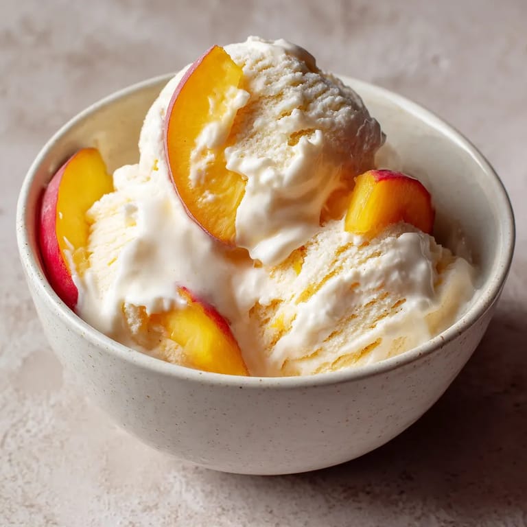 Guardar Este helado casero de yogur y melocotón combina la cremosidad del yogur griego con el dulzor de los melocotones frescos creando un postre ligero y refrescante perfecto para combatir el calor del verano o sorprender en cualquier comida familiar