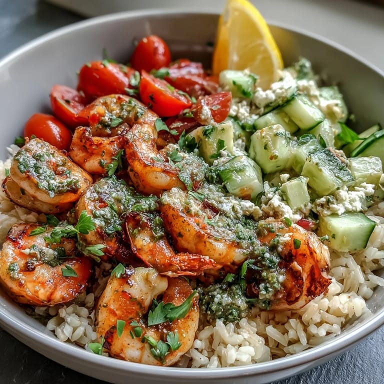Guardar Un mediodía nublado, mi hermana llegó a casa exhausta del trabajo y me pidió algo rápido pero que no pareciera comida rápida. Mientras ella se desmoralizaba en la cocina, empecé a saltear camarones con ajo y limón, y el aroma fue tan tentador que su cansancio simplemente se desvaneció. Esos cuencos brillantes, llenos de color y frescura, se convirtieron en nuestro ritual secreto para las noches ocupadas. Desde entonces, no puedo resistir hacer estos cuencos cuando necesito algo que sea a la vez restaurador y reconfortante.