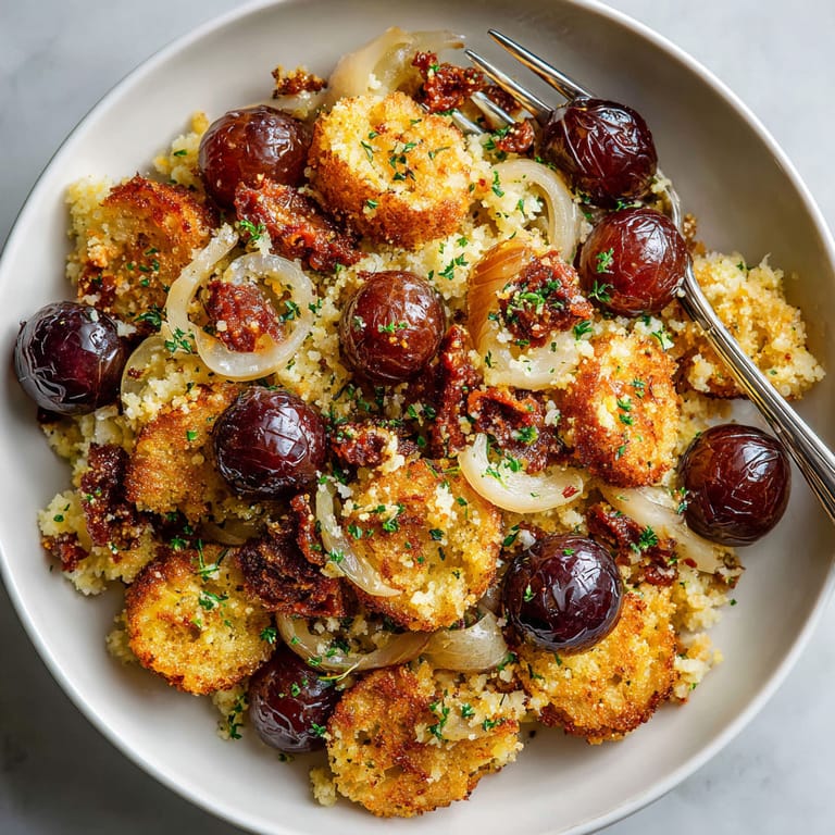 Guardar La clave es usar pan bien asentado y no pasarse con el agua. El chorizo, cuando se dora bien, suelta todo su aroma y deja la base más sabrosa. Esa parte crujiente, combinada con el dulzor inesperado de las uvas, me recuerda a la primera vez que probé este plato en casa de mi abuela, en una mesa llena de risas y frío otoñal afuera.