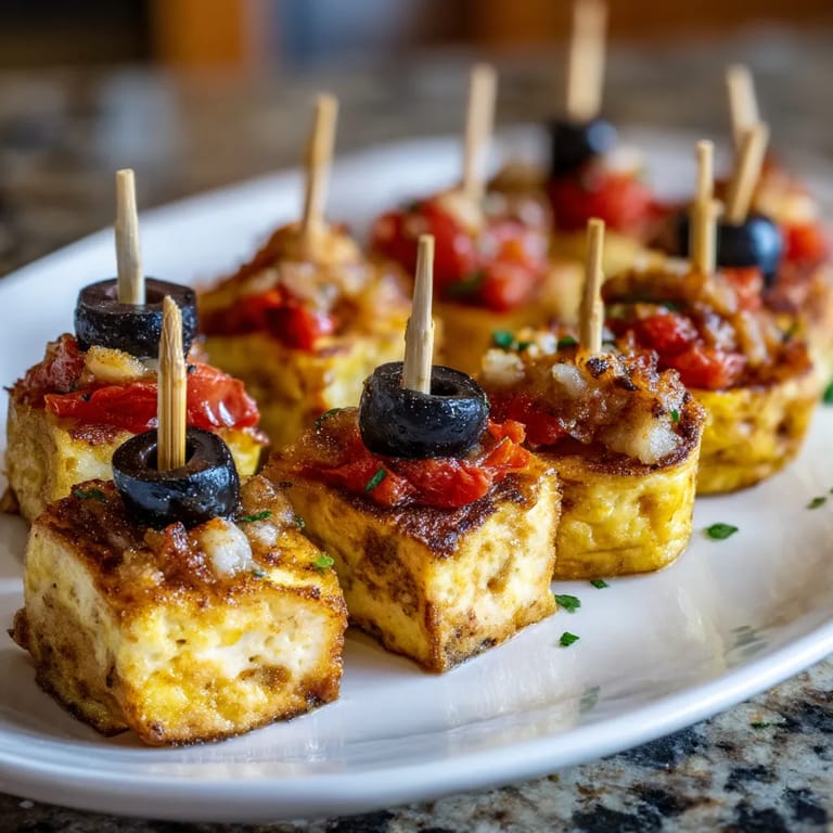 Guardar Esta receta de mini brochetas de tortilla española se ha convertido en mi salvación para cualquier reunión o picnic. Estas versiones en bocado de la clásica tortilla española son perfectas para impresionar a los invitados con mínimo esfuerzo.