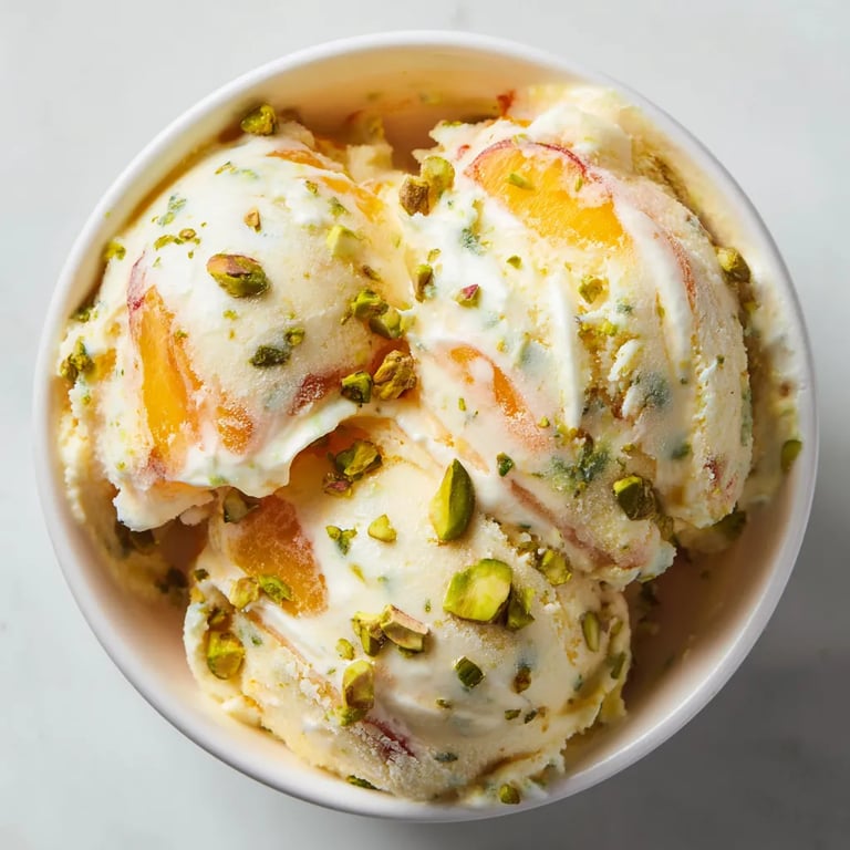Un bol de helado con pistacho y nectarine. | yumyta.com