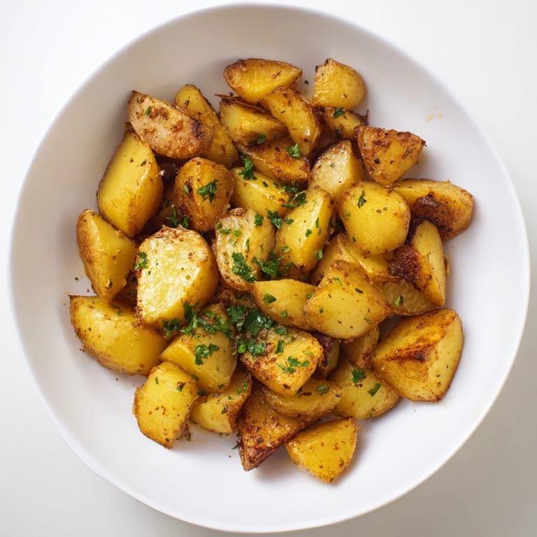 Guardar Estas papas asadas con ajo y paprika son crujientes por fuera y tiernas por dentro, infusionadas con ajo fragante y paprika ahumada, lo que las convierte en el acompañamiento perfecto para cualquier comida.