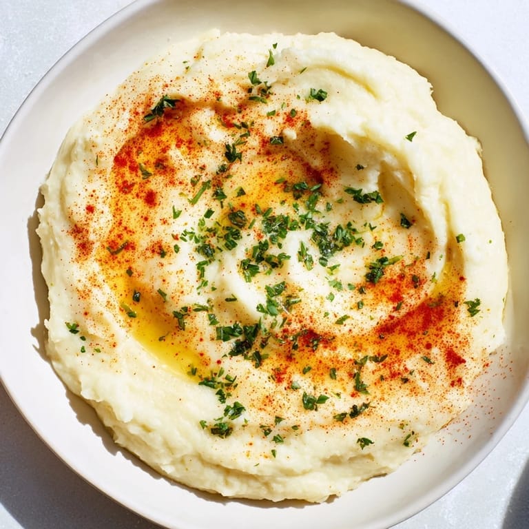 Guardar Un puré cremoso y sabroso que combina patatas y apionabo, realzado con pimentón ahumado para una profundidad sutil y ahumada. Perfecto como una alternativa ligera al puré de patatas clásico.
