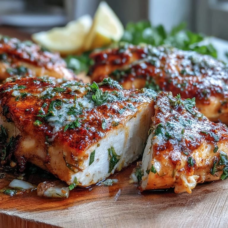 Guardar La primera vez que preparé estas pechugas de pollo al horno fue durante un verano particularmente ocupado cuando buscaba algo saludable y rápido. Recuerdo estar en mi cocina, con la ventana abierta y el aroma de las hierbas mezclándose con la brisa cálida. El termómetro marcaba 35°C afuera, pero aun así encendí el horno, decidida a encontrar una receta básica que pudiera personalizar infinitamente. Esa noche descubrí que la simplicidad a veces ofrece los sabores más auténticos.