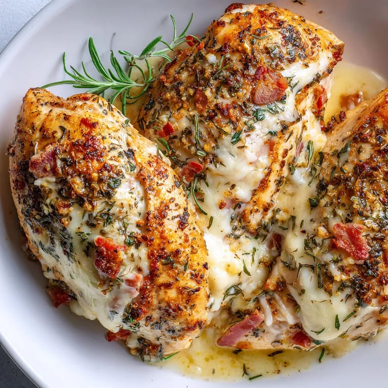 Guardar Las pechugas de pollo rellenas de jamón y queso son una solución deliciosa y fácil para una cena especial o un almuerzo con sabor casero. El interior jugoso con queso fundido y jamón hace que cada bocado sea reconfortante, mientras que la marinada y un ligero toque de hierbas transforman este plato simple en algo memorable.