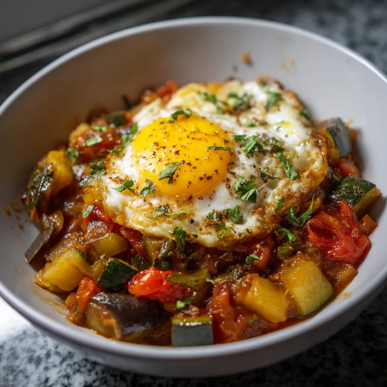 Guardar Mi ingrediente favorito en esta receta es la berenjena. Muchos la evitan por su tendencia a absorber aceite, pero cuando se cocina correctamente, aporta una textura aterciopelada y un sabor increíble que complementa perfectamente los tomates ácidos y los dulces pimientos.