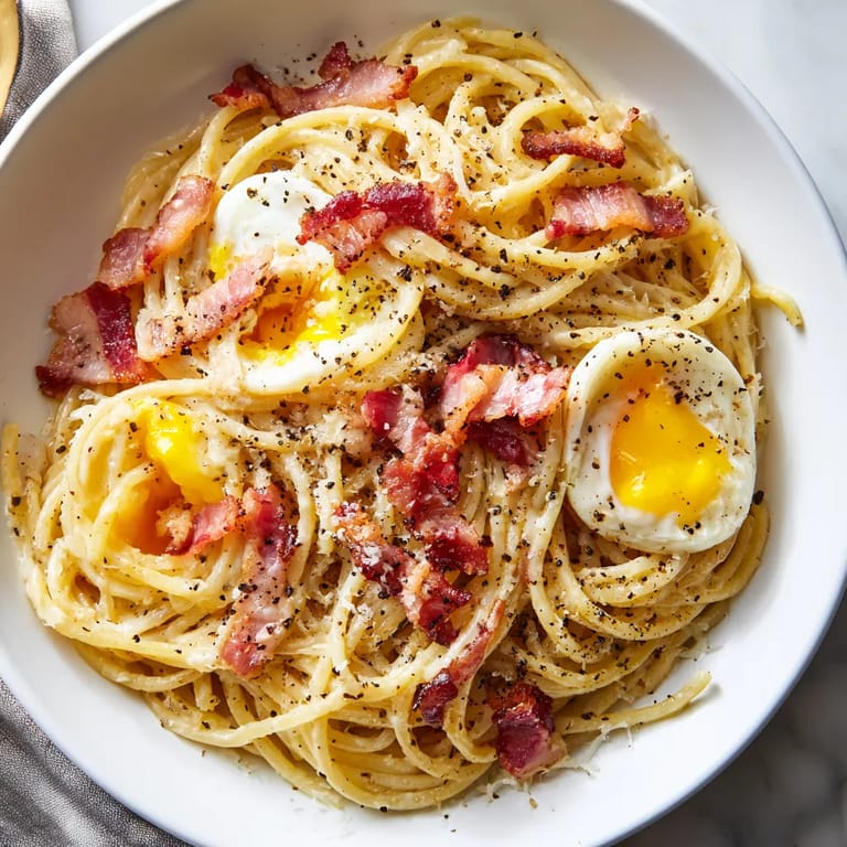 No contiene nata la cremosidad es gracias al huevo y la grasa Por eso resulta menos pesada Se adapta bien a distintos tipos de pasta aunque los espaguetis son los más tradicionales El pecorino romano auténtico es clave para el sabor original Siempre disfruto añadiendo un poco más de pimienta negra justo antes de servirle a mi familia Nos recuerda las noches frías en que la carbonara nos reunía alrededor de la mesa con una copa de vino y muchas risas