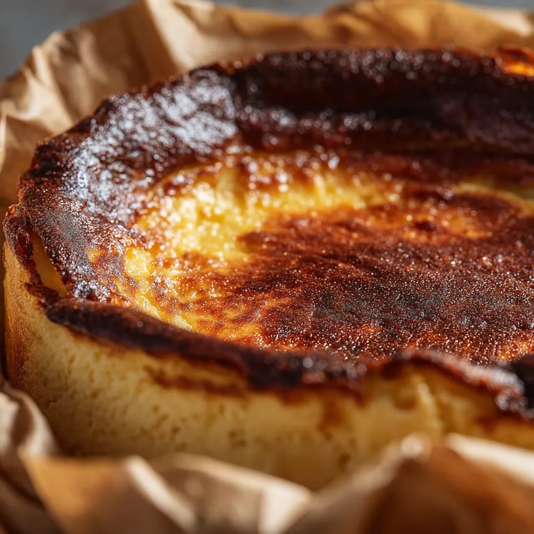 Guardar Esta tarta de queso vasca clásica es el postre que todos quieren probar cuando buscan algo que luzca simple pero que sorprenda con su textura sedosa y sabor profundo. A diferencia de otras tartas de queso, aquí se busca ese dorado intenso en la superficie, casi quemado, y un centro inestablemente cremoso que apenas aguanta al corte. Es la favorita de mi familia para cualquier celebración y un sólido éxito asegurado cuando la llevo a reuniones de amigos.