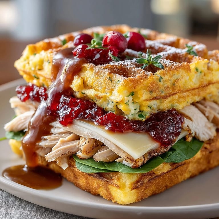 Guardar Estos Sándwiches de Waffle con Sobras de Thanksgiving son mi truco favorito para darle nueva vida a las sobras del gran banquete. Imagina el relleno transformado en waffles crujientes y dorados, rellenos de pavo, salsa de arándanos y gravy. Es un almuerzo donde cada bocado sabe a fiesta, y la preparación resulta tan divertida como reconfortante.
