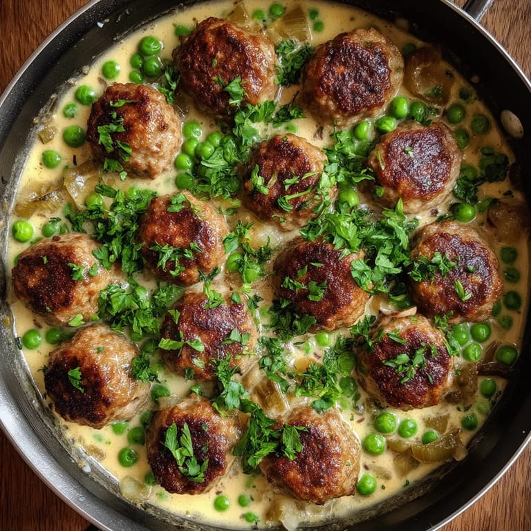Guardar Estas albóndigas con guisantes y salsa de vino blanco se han convertido en un plato imprescindible en mi mesa cuando busco algo reconfortante pero con un toque elegante. La combinación de la carne jugosa con la dulzura de los guisantes y la delicada salsa de vino blanco crea una armonía de sabores que transporta directamente a las tabernas familiares de España.