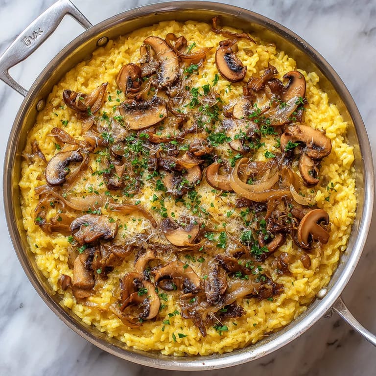 Guardar Este arroz cremoso con azafrán y champiñones es mi plato estrella cuando quiero impresionar a invitados sin pasarme horas en la cocina. La combinación del lujoso azafrán con los champiñones terrosos crea una experiencia culinaria que transforma ingredientes simples en algo realmente especial.