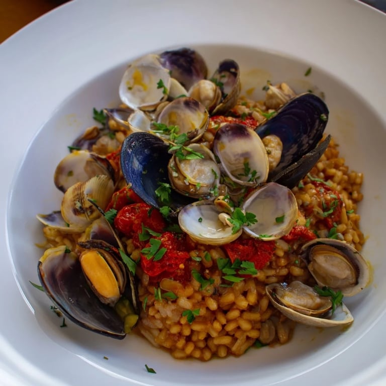 La primera vez que preparé este arroz, los aromas me recordaron a las cenas festivas junto a la costa en España, y el contraste entre las cerezas y los mejillones me conquistó tras el primer bocado.