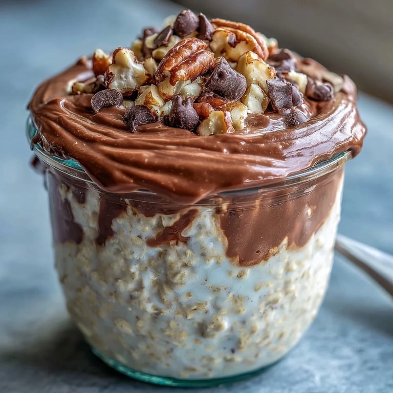 Guardar Una mañana lluviosa de martes, cansada de mis cereales habituales, decidí experimentar con lo que tenía en la despensa. La combinación de avena con mantequilla de maní y chocolate se convirtió instantáneamente en el antojo que esperaba con ansias todas las noches. Ahora preparo estos frascos mientras escucho música, sabiendo que el desayuno de la mañana siguiente será un verdadero capricho.
