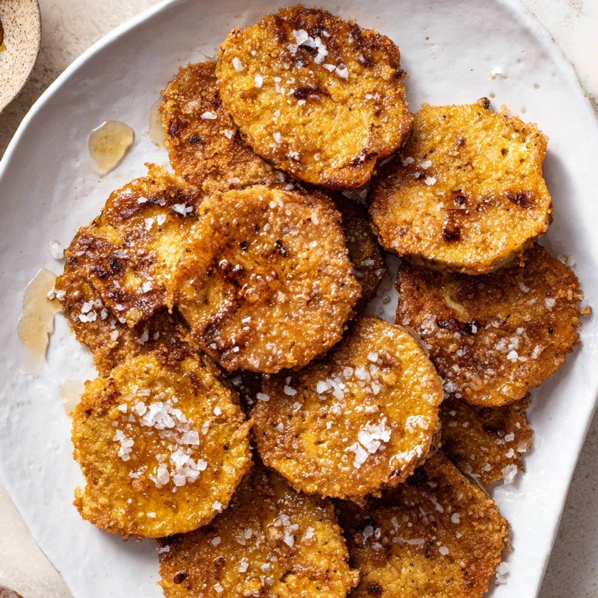 - Calienta aceite a un centímetro de altura en una sartén grande. Fríe las berenjenas por tandas 2–3 minutos por cada lado hasta dorar y queden crujientes. Escurre en papel de cocina.