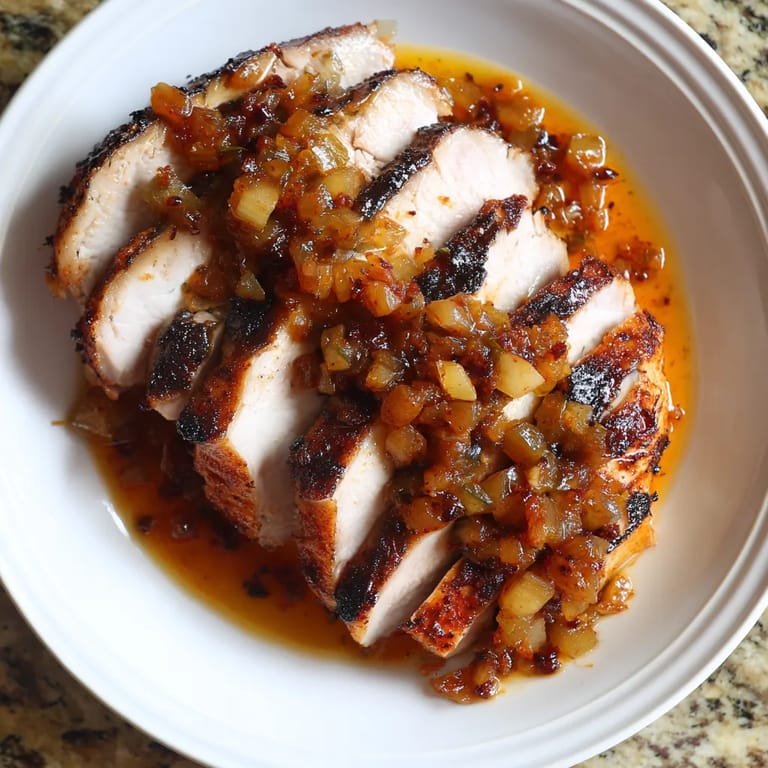 Guardar Este cerdo asado marinado con especias españolas y acompañado de chutney de manzana ha sido mi plato estrella para ocasiones especiales durante años. La combinación de pimentón ahumado, cítricos y hierbas frescas crea una corteza dorada perfecta mientras el interior permanece jugoso y tierno.
