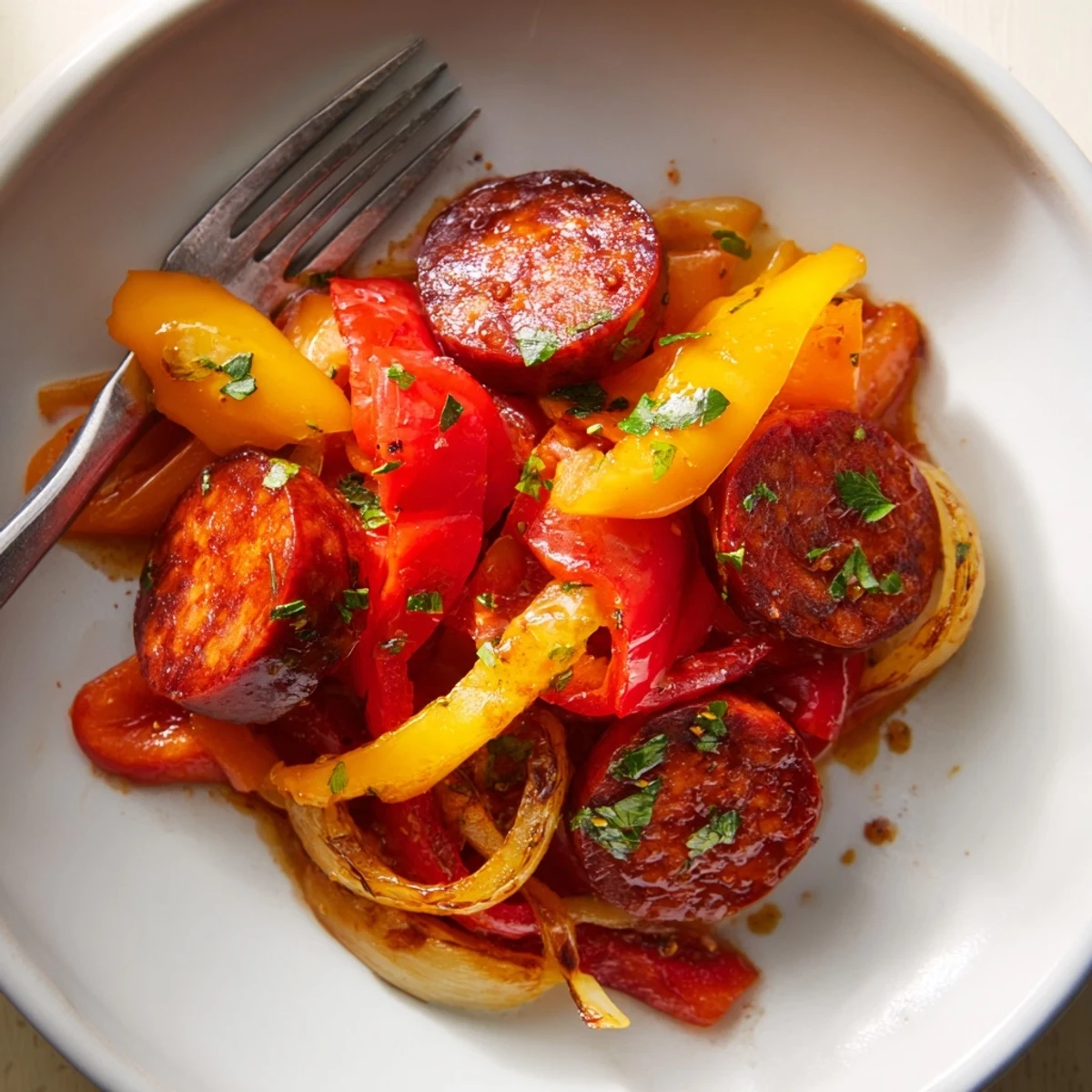 La primera vez que preparé esta receta fue para una noche informal de tapas en casa. El contraste de sabores entre el chorizo, los pimientos y el toque dulce del refresco impresionó a todos mis invitados y se ha convertido en uno de nuestros favoritos.
