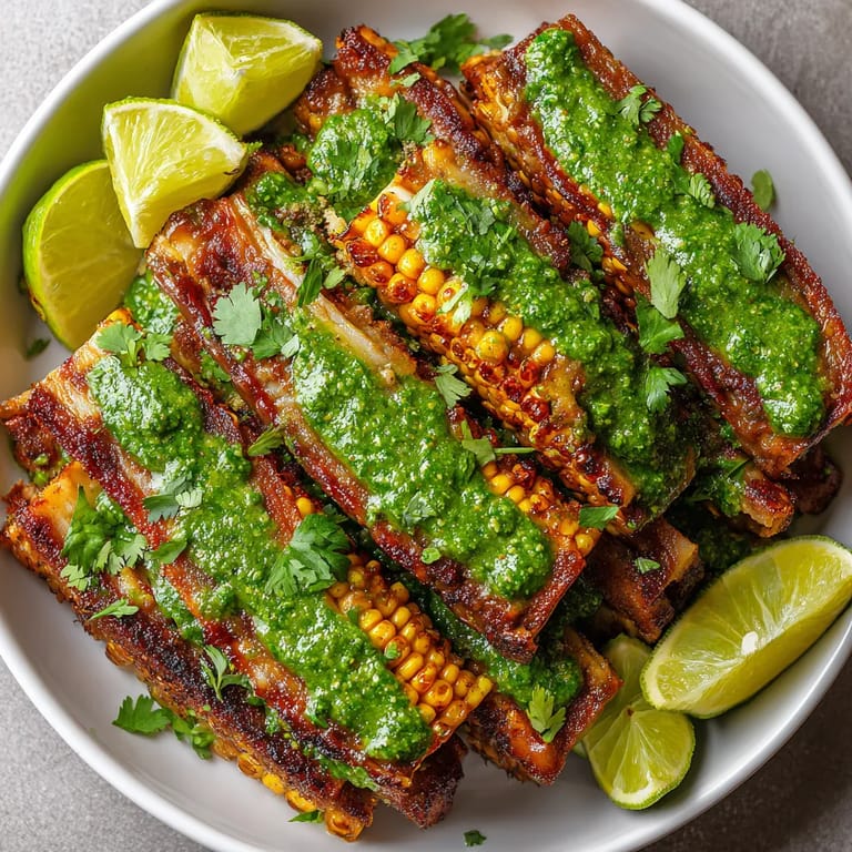 Guardar Estas costillas de maíz al mojo verde son una idea genial para aprovechar el maíz fresco y llevar directamente a la mesa los sabores vibrantes de Canarias en minutos. El maíz se asa hasta que queda tierno, dorado y crujiente por los bordes y el mojo verde, con cilantro, ajo y pimiento, aporta un toque fresco y alegre que lo transforma en un plato perfecto para compartir en verano.