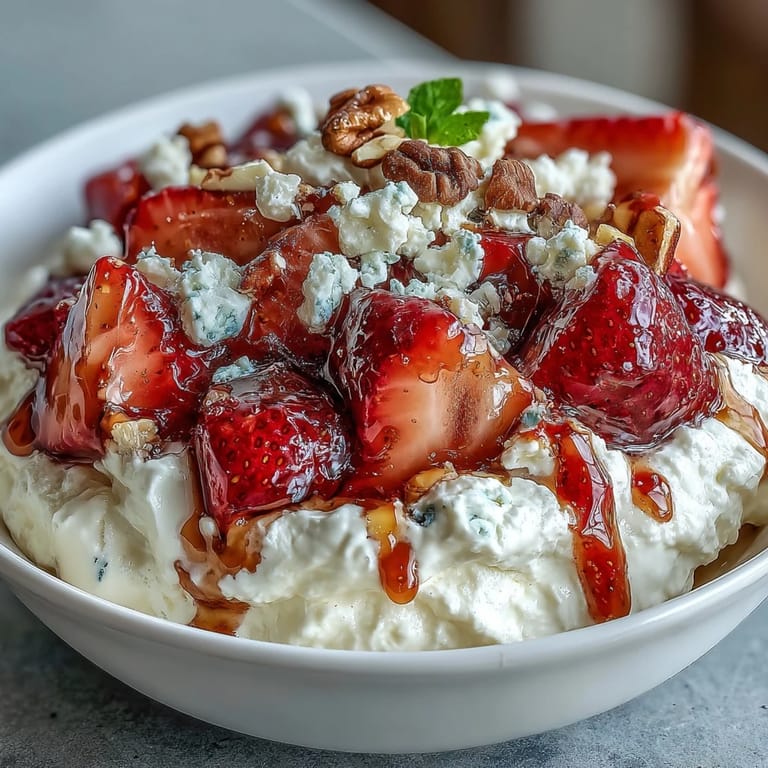 Guardar Una mañana, mientras preparaba el desayuno con prisa, descubrí que el queso cottage que tenía en la nevera era perfecto para algo más que solo comerlo de la cuchara. Corté las fresas que acababa de comprar en el mercado, y algo en la combinación de lo cremoso con lo dulce y fresco me hizo sonreír. Ahora, cada vez que necesito algo que sea rápido pero que se sienta especial, regreso a este tazón simple que se convirtió en mi favorito sin que yo lo planeara.