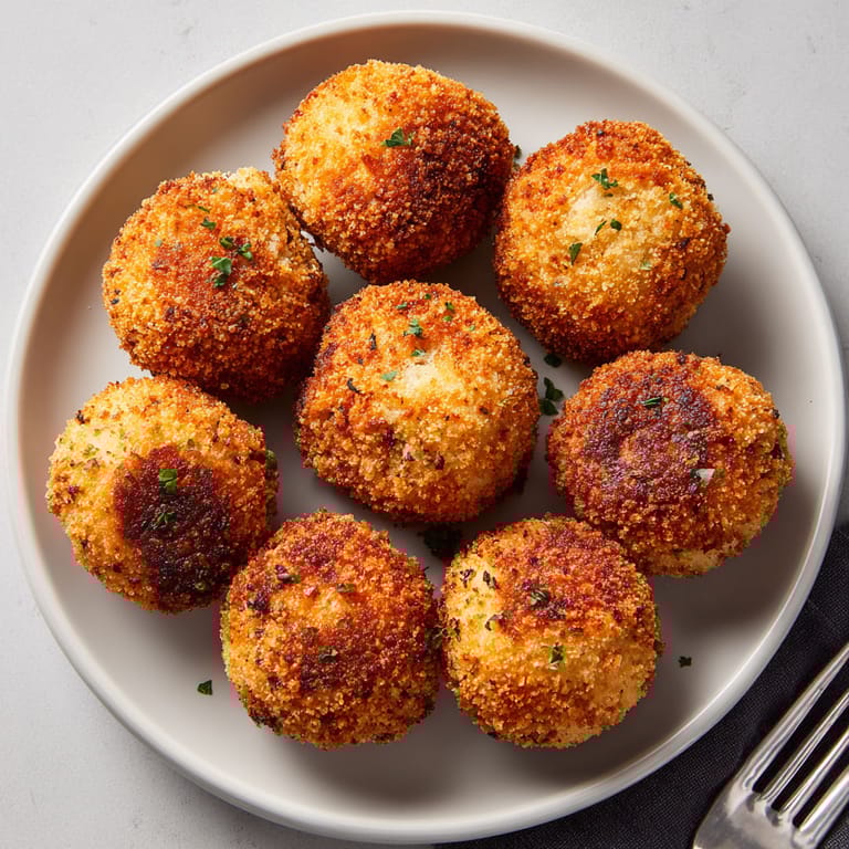 - Rocía las croquetas con aceite en spray. Hornea a 200 °C durante 20-25 minutos, girándolas con suavidad a mitad del tiempo, hasta que estén doradas y crujientes por fuera.
