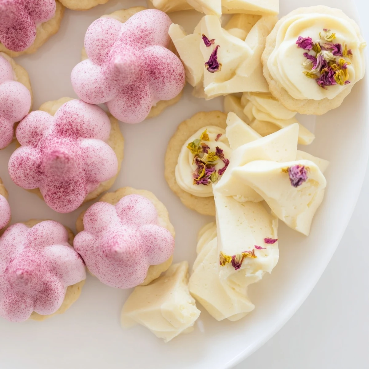 - Bark de Pétalos de Chocolate Blanco: 225 g (8 oz) de chocolate blanco picado, 1/4 taza de pétalos de flores comestibles mixtos (por ejemplo, pensamiento, caléndula, rosa, viola)