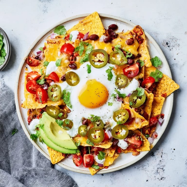 Guardar Un domingo por la mañana, con hambre de algo distinto, vacié la despensa sobre la encimera: un puñado de nachos, unos huevos, queso rallado. En lugar de hacer lo obvio, los apilé en una bandeja y metí todo al horno. Cuando salieron burbujeantes y dorados, con los huevos estrellados encima como soles de yema líquida, supe que había descubierto mi nuevo desayuno favorito.