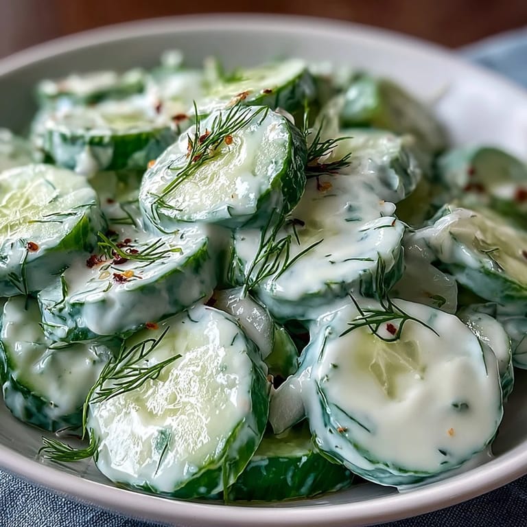 Guardar Fue un martes caluroso cuando mi hermana llegó con un táper de ensalada de pepino que había hecho en cinco minutos, y de repente comprendí que toda mi vida había estado complicando las cosas. El yogur griego cremoso abrazaba cada rodaja crujiente, el eneldo fresco susurraba desde cada bocado, y simplemente funcionaba. Ahora es mi salvador silencioso cuando el calor se vuelve insoportable y necesito algo que se sienta como una caricia fría en la lengua.