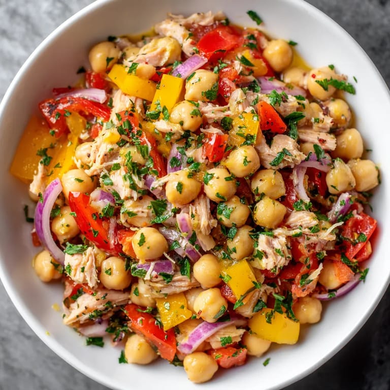 Guardar Esta ensalada española de garbanzos y atún ha salvado muchísimos almuerzos en mi casa cuando busco algo refrescante nutritivo y sin pasar horas en la cocina Es mi opción predilecta para esos días en los que necesito comer bien sin complicarme perfecta cuando hace calor y se agradece la comida fría