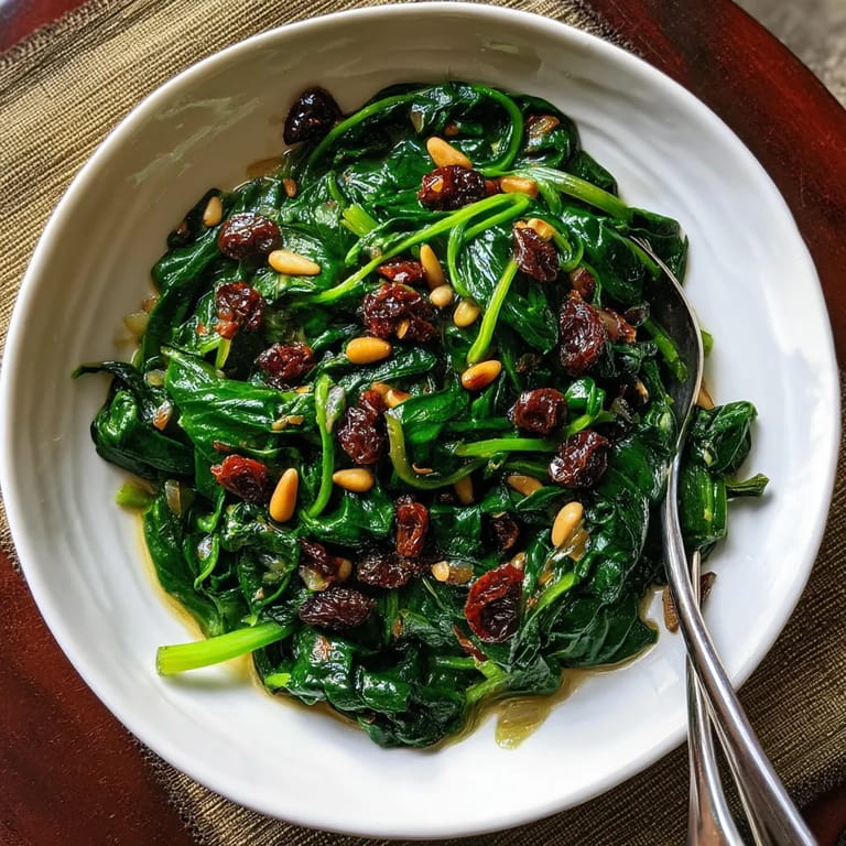 Guardar Las espinacas con pasas y piñones tienen un lugar especial en mi memoria culinaria. Mi abuela siempre incluía este plato en las celebraciones familiares y me enseñó que el secreto está en no cocinar demasiado las espinacas para mantener su color vibrante y nutrientes.