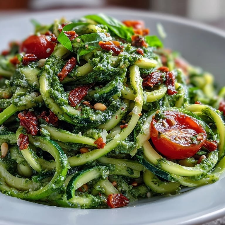 Guardar Descubrí esta receta un martes lluvioso cuando mi refrigerador estaba lleno de calabacín y me negaba a hacer otra sopa aburrida. Mientras picaba una cebolla, me pregunté qué pasaría si transformaba esas verduras verdes en fideos y creaba algo completamente diferente. El resultado fue tan inesperado que mi compañero de cocina pidió la receta antes de terminar de comer. Ahora es lo que hago cada vez que necesito algo rápido que se sienta especial, sin comprometer mis principios veganos.