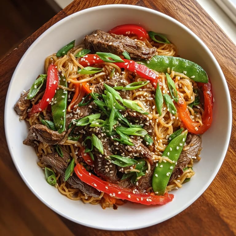 Guardar Esta receta de fideos salteados con carne de res y sésamo se ha convertido en uno de mis recursos favoritos para cenas rápidas y deliciosas entre semana Una combinación de carne jugosa verduras crujientes y esa irresistiblemente fragante salsa asiática convierte cada bocado en algo especial Nunca falta cuando tenemos antojo de algo reconfortante pero fácil de preparar en casa