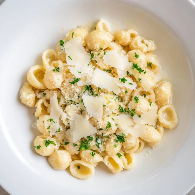 Guardar There's something almost magical about a weeknight when you're standing in your kitchen at 6 PM with nothing planned for dinner. I discovered this pasta one such evening, armed with nothing but butter, garlic, cream, and the stubborn belief that something wonderful could happen in fifteen minutes. My daughter wandered in asking what smelled so good, and by the time I'd finished stirring in the Parmesan, she was already setting the table. It became our secret weapon for nights when time was tight but comfort mattered most.