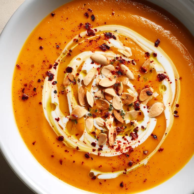 Guardar Cuando llega el frío y busco algo reconfortante sin abandonar la inspiración española, preparo este gazpacho templado de calabaza. Es perfecto para quienes aman los sabores especiados y la textura suave digna de una crema, pero con un giro original sobre el gazpacho tradicional. Me resulta tan visualmente atractivo en la mesa que siempre recibe elogios, especialmente en días grises donde el naranja vibrante da alegría.