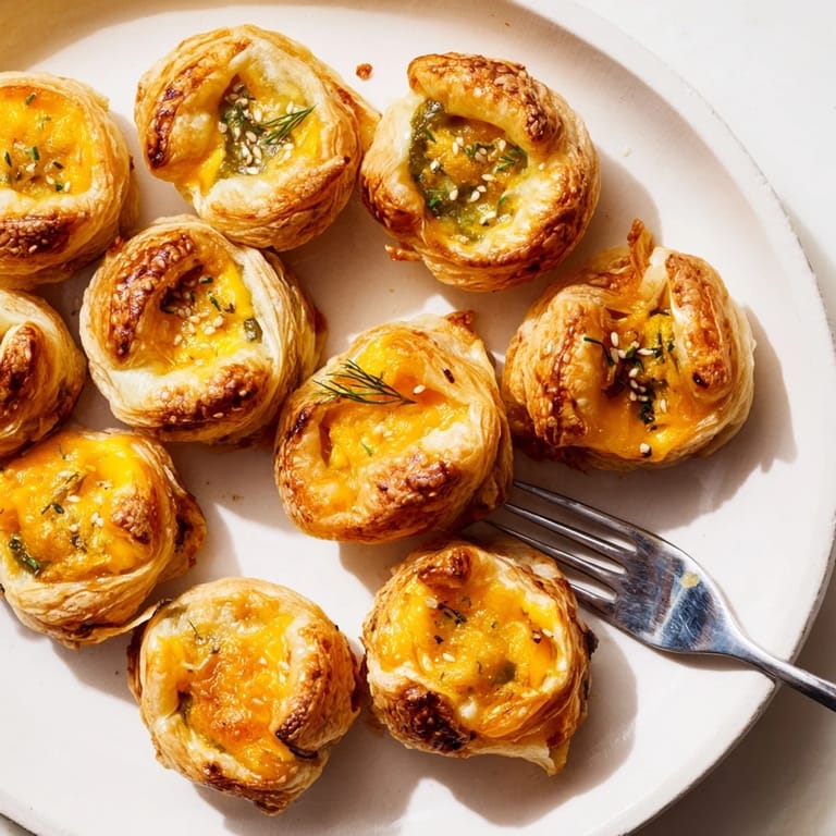 Guardar Bocaditos de hojaldre con pepinillos son una opción irresistible para aperitivos, con masa crujiente, relleno cremoso y un toque especial de especias. Son ideales para fiestas y sorprender a los invitados con algo diferente.