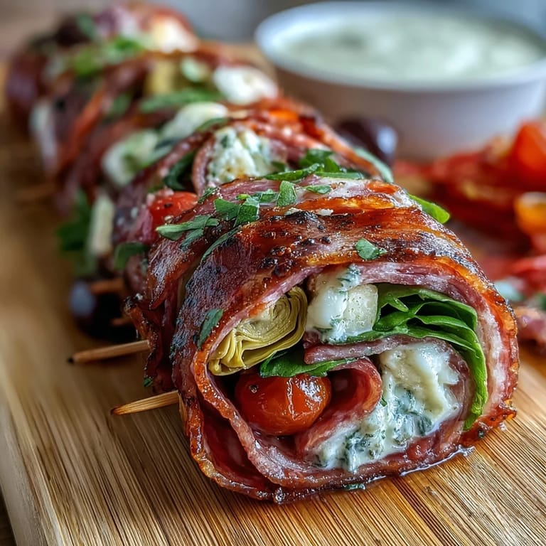 Guardar Recuerdo cuando mi sobrina de nueve años tomó su primer pincho en la cena del domingo y dijo: 'Esto es como comer un sándwich italiano con las manos, pero sin ensuciarse.' Eso resumió perfectamente por qué esta receta se ha vuelto un pilar en nuestras reuniones. No es solo comida, es el tipo de cosa que hace que la gente se ralentice y disfrute del momento.