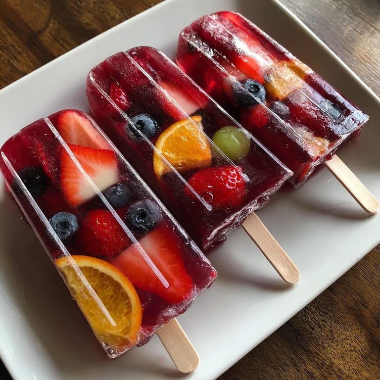 Guardar Estos polos de sangría NoLo son el antídoto perfecto para los días calurosos cuando quieres un postre refrescante y divertido sin preocuparte por el alcohol para los más pequeños. Inspirados en la clásica sangría española pero transformados en polos llenos de fruta fresca y té de hibisco, se convierten en una opción saludable y deliciosamente colorida para toda la familia.