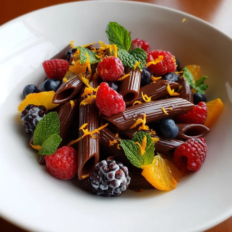 Guardar Este postre tan original reinventa la pasta clásica y la convierte en una verdadera delicia para amantes del chocolate que buscan algo diferente con un toque fresco y frutal. Un plato ideal para sorprender en una cena especial o para darse un gusto audaz sin complicaciones.