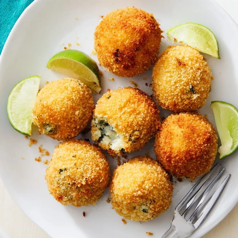 Guardar A playful fusion of Spanish croquetas with zesty pickle and margarita-inspired flavors, these crispy bites are tangy, creamy, and perfect for party appetizers or tapas.