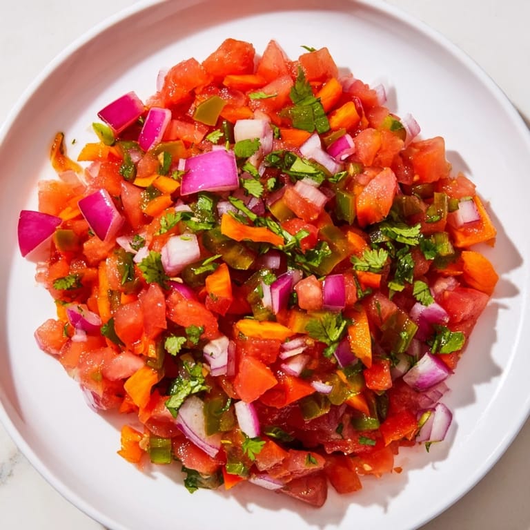 A lively bowl of Pico de Gallo, featuring bright tomatoes and vibrant pickled vegetables. Guardar